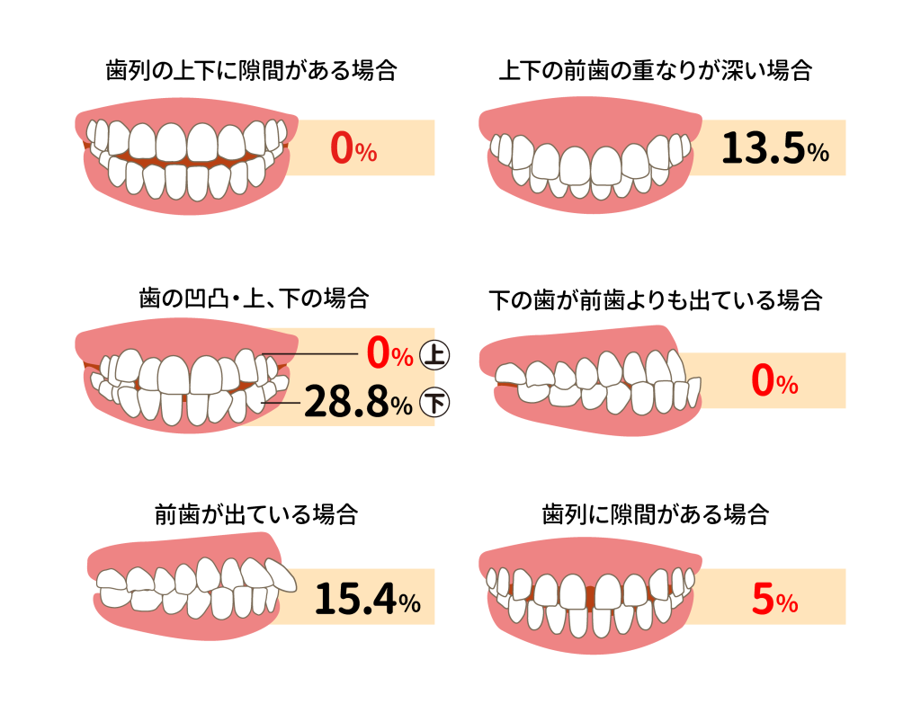 このように、不整な歯並びと8020達成率には、深い関係性があります。