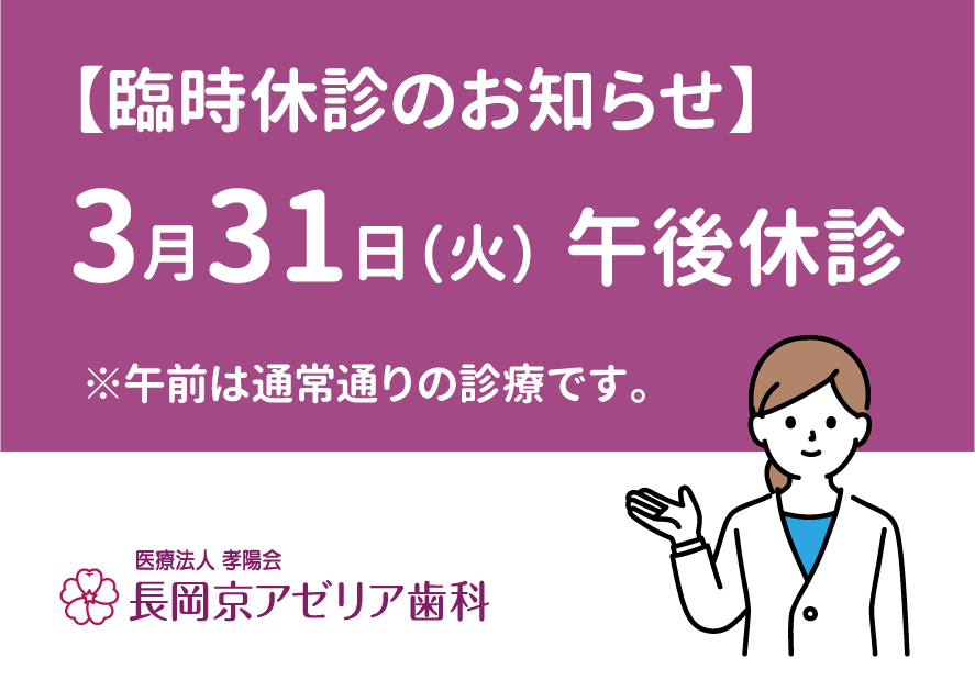 3月31日(火)午後は休診となります。