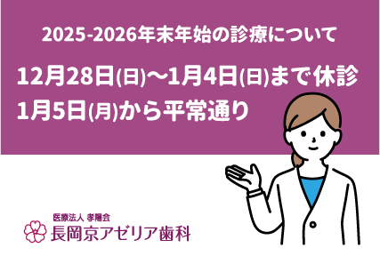 年末年始の診療につきましては、誠に勝手ながら下記の通りとさせていただきます。