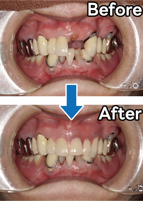 KIさんの場合、左上の2本の歯が破折により欠損してしまいました。