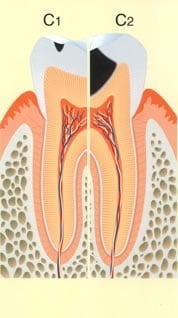 さらに重症化(C3~C4)すると歯内療法が必要となる。