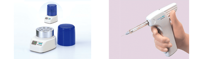 麻酔液を体温と同じ痛みのない最適な温度にする器具