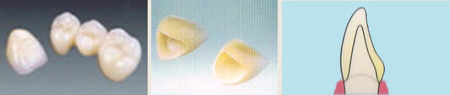 樹脂を素材にしたかぶせもの。永年使用していると、変色したり、擦り減ってしまうことがあります。力のかかる奥歯については補強する金属を使用することができないという制限があります。
