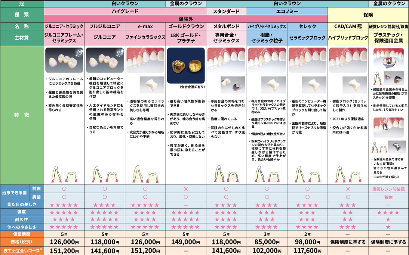(種類)白いクラウン ・ ハイグレードタイプ / (主材質)セラミックス+金・プラチナ合金
