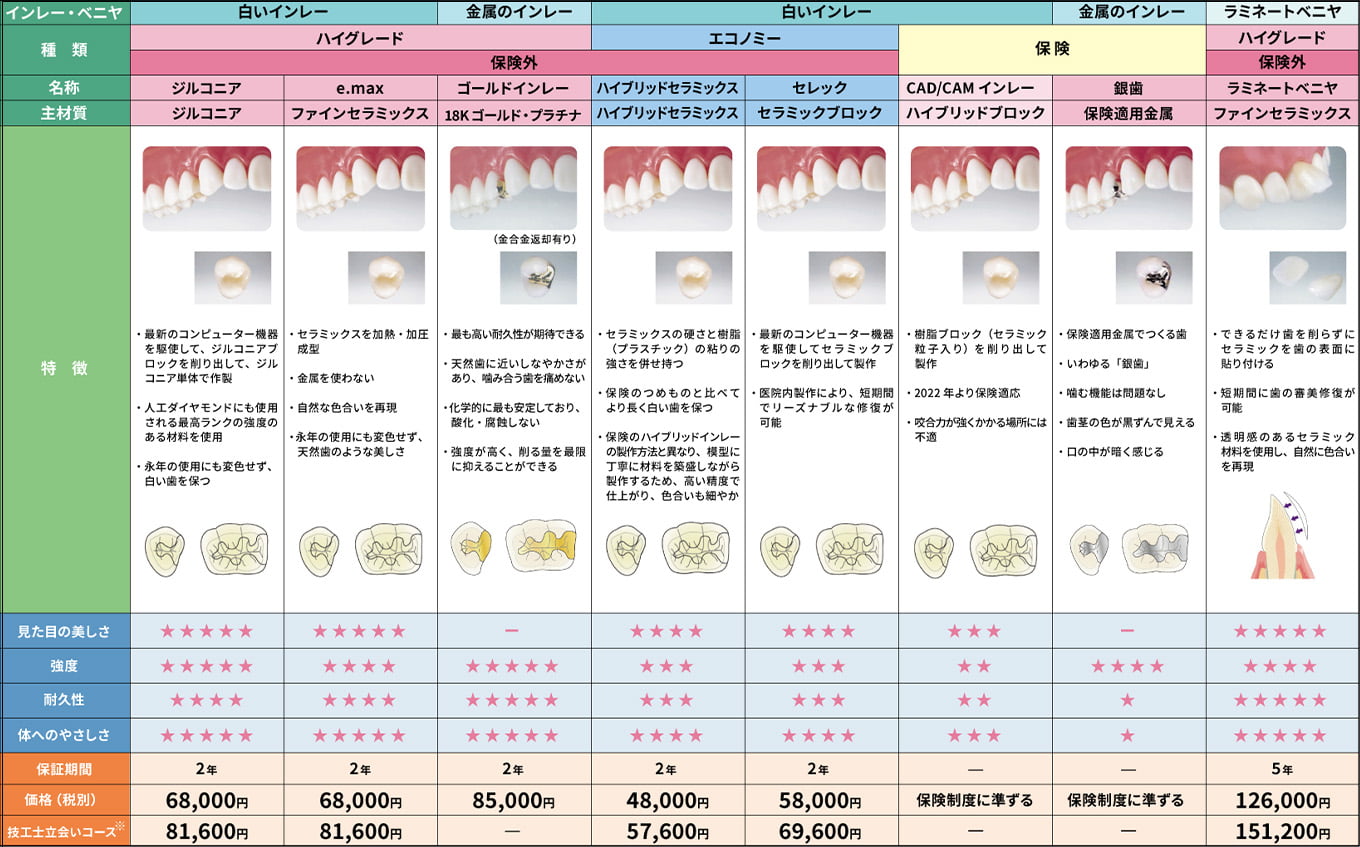 (種類)白いインレー ・ ハイグレードタイプ / (主材質)ジルコニア