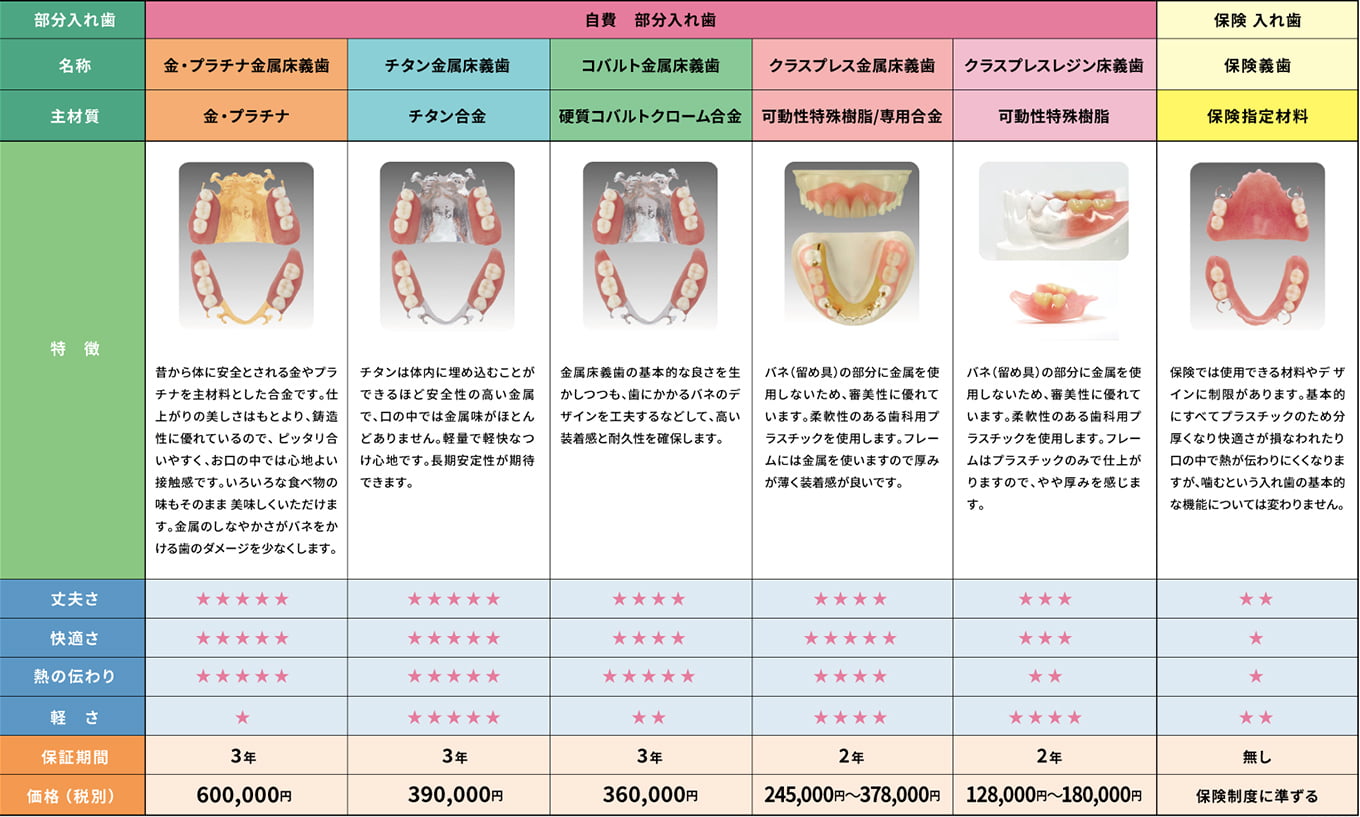 (種類)部分入れ歯 ・ ハイグレードタイプ / (主材質)金・プラチナ+プラスチック