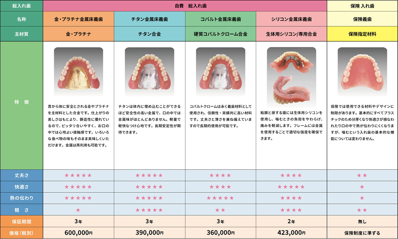 (種類)総入れ歯 ・ ハイグレードタイプ / (主材質)ステンレスメッシュ+プラスチック